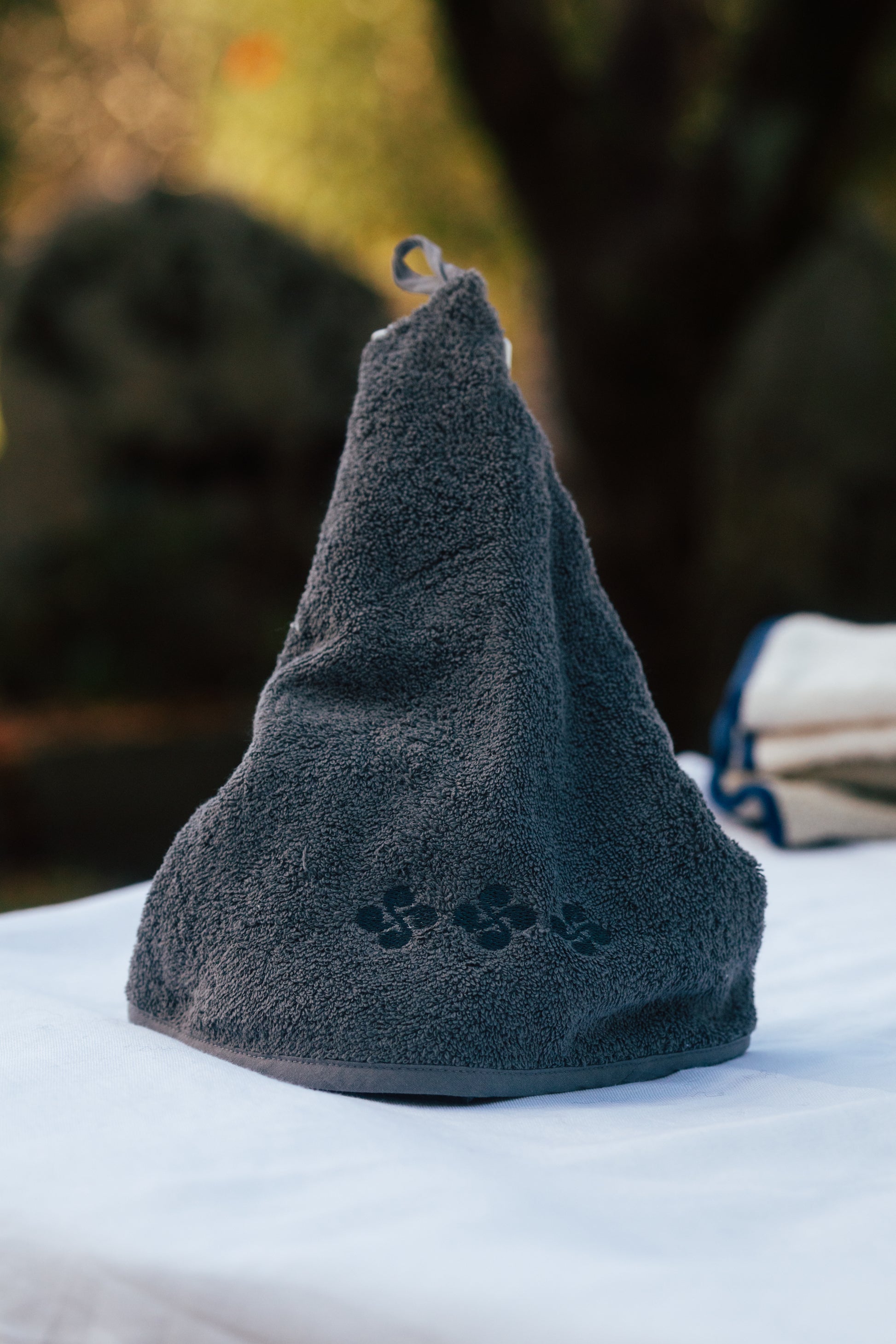 Torchon rond avec lauburu (croix basque) 400gr/m2, 100% coton, Ø68cm